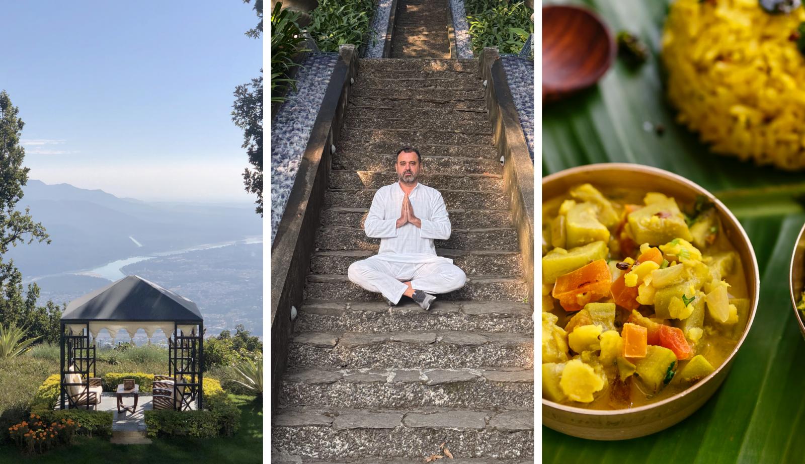 Além das práticas diárias, o ambiente natural, montanhas, florestas e o Ganges, funciona como parte ativa do processo terapêutico.