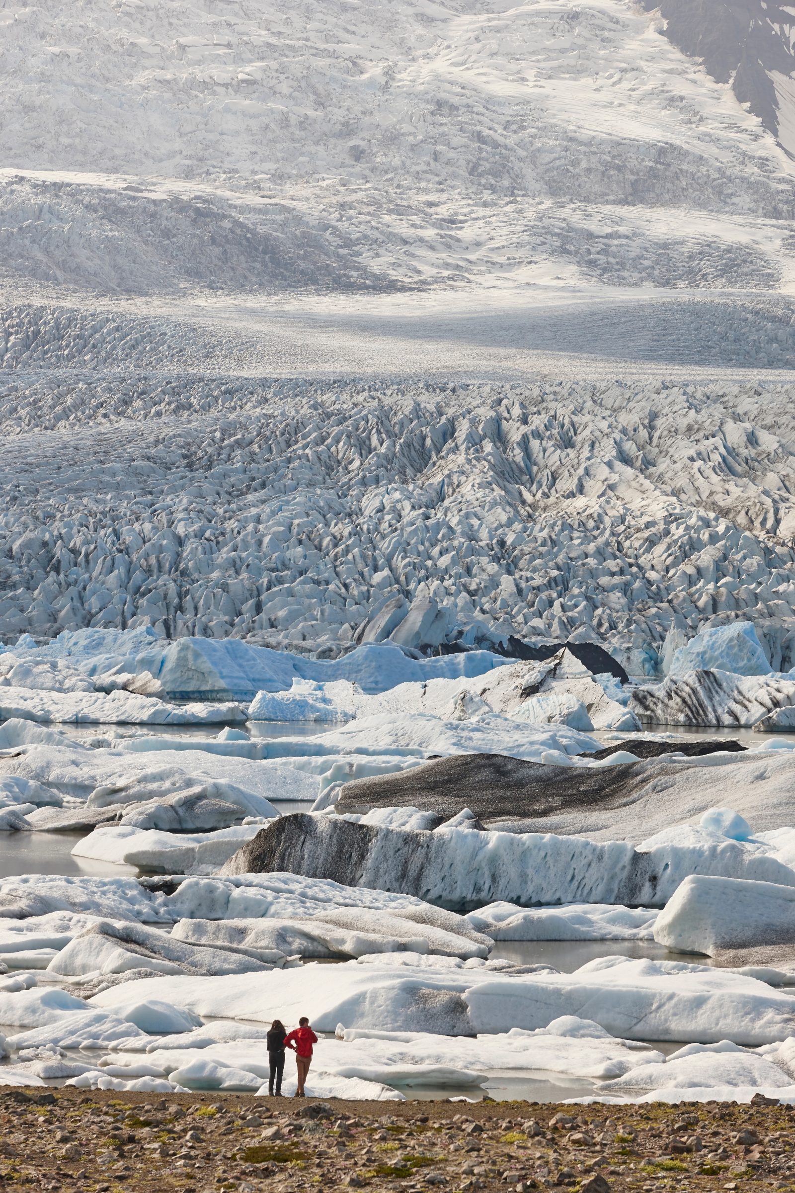 Os glaciares islandeses impressionam pela vastidão e pelos tons claros que dominam a paisagem. Entre gelo, neve e silêncio, o branco ganha protagonismo e convida a uma experiência de introspecção e admiração pela natureza.