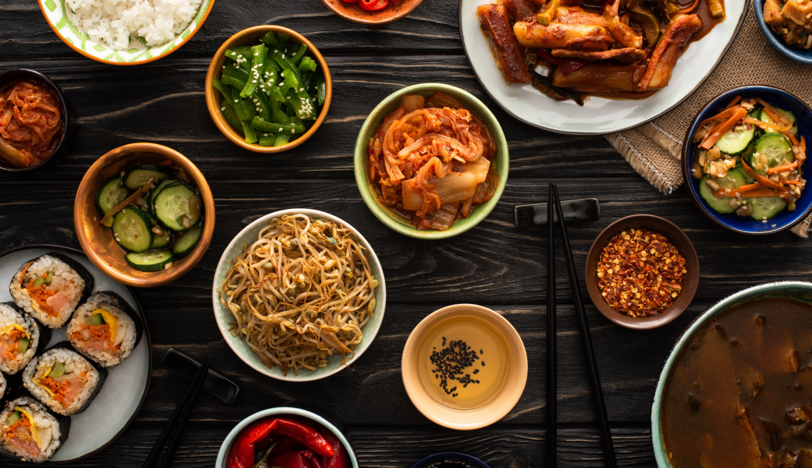 A hospitalidade coreana se traduz em mesas cheias — quanto mais acompanhamentos, maior o carinho.