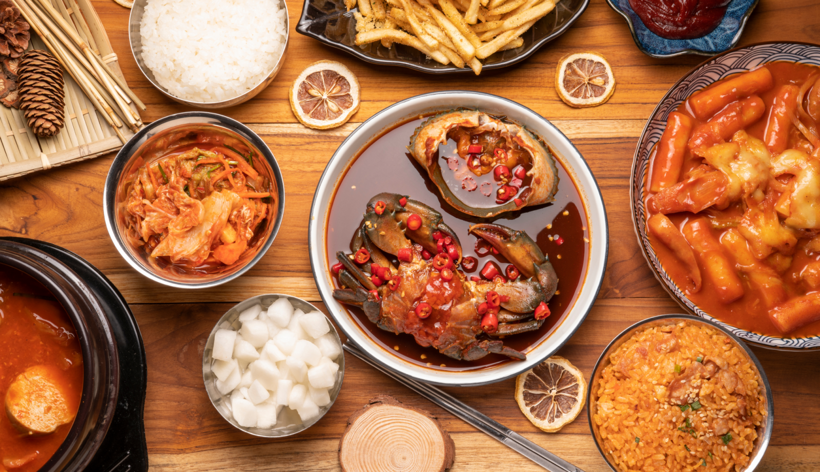 Em Gwangju, a comida ganha força e personalidade. Pratos mais marcantes, fermentações mais intensas, mesas fartas. É uma região que expressa identidade através da abundância.